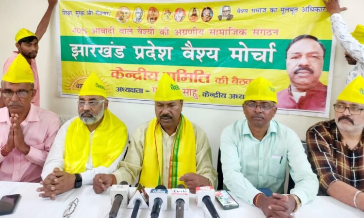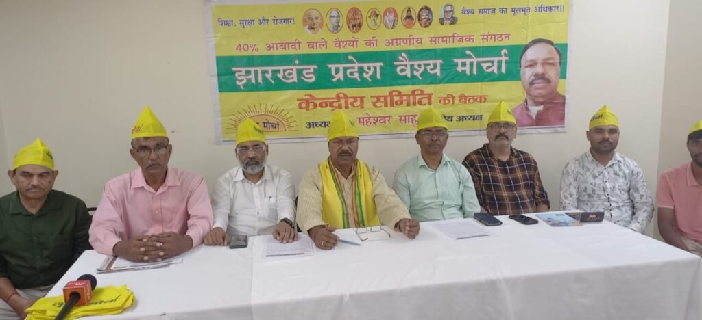 केंद्रीय अध्यक्ष महेश्वर साहु ने कहा कि झारखंड प्रदेश वैश्य मोर्चा राज्य में निवास करने वाले 54 वैश्य उप-जातियों का सामाजिक संगठन है, जो राज्य के 40% आबादी की चिंता करती है और उनकी समस्याओं व मांगों को लेकर संघर्ष करती रहती है। वैश्य मोर्चा सामाजिक कार्यों में भी भरपूर योगदान देती रही है और लोगों के व्यक्तिगत समस्याओं का भी भरसक निदान करती है तथा उनके साथ खड़ा रहती है. साहु ने कहा कि हमारे लिए गौरव की बात है कि वैश्य मोर्चा की ओर से जिन मुद्दों को लेकर आंदोलन और संघर्ष किया गया है, या तो हम सफल हुए हैं या फिर सरकार और राजनीतिक दलों के लिए वह मुद्दा बन गया है। यह सब वैश्य मोर्चा के निष्ठावान, समर्पित कार्यकर्ताओं और शुभचिन्तकों की मेहनत, लगन, अनुशासन और संगठन एवं नेतृत्व के प्रति भरोसा से ही संभव होता रहा है। वैश्य मोर्चा भी समाज के विश्वास और भरोसा को कभी टूटने नहीं दिया है।