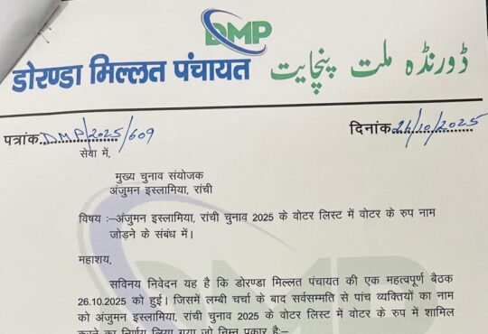 रांची : वक़्फ़ अमेंडमेंट 2025 के धारा 61 क्लाऊज़ (1A) के अनुसार केंद्र और राज्य सरकार द्वारा सभी मुस्लिम वक़्फ़...