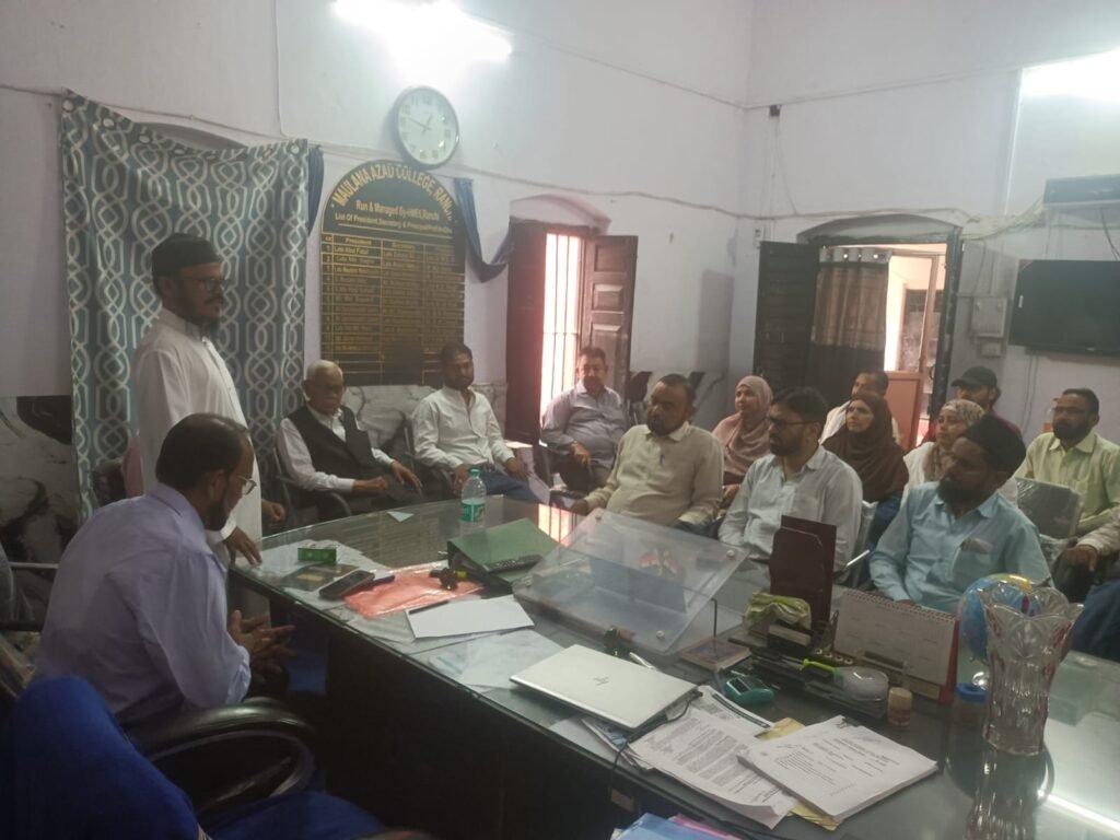 انٹر سیکشن کے انچارج اور صدر شعبہ اردو مولانا ڈاکٹر عبیداللہ قاسمی نے کہا کہ ڈاکٹر احمد سجاد اردو زبان و ادب کے صرف نامور محقق اور تنقید نگار ہی نہیں تھے بلکہ وہ ساری زندگی جماعت اسلامی کی دعوت و تحریک سے جڑے رہے ، مصروف ترین لمحات میں بھی وہ معاشرے کے مختلف پروگراموں کے لئے وقت نکال کر عملی طور پر حصہ لیتے تھے ، مولانا قاسمی نے کہا ہے کہ پروفیسر ڈاکٹر احمد سجاد صاحب مختلف صلاحیتوں کے مالک تھے جس کا احاطہ اس تعزیتی نشست میں نہیں کیا جا سکتا ہے ، شعبہ تواریخ کے صدر جناب پروفیسر ڈاکٹر الیاس مجید صاحب نے اپنے خیال کا اظہار کرتے ہوئے کہا کہ ڈاکٹر احمد سجاد صاحب رانچی یونیورسٹی کے شعبہ اردو کے مایا ناز اور باصلاحیت اساتذہ میں شمار کئے جاتے تھے ، وہ رانچی یونیورسٹی کے ڈین فیکلٹی کے سینئر ممبر بھی تھے ، ہائیر مسلم ایجوکیشنل سوسائٹی آف انجمن اسلامیہ رانچی کے فاونڈر ممبر ایڈووکیٹ جناب امان صاحب نے بھی پروفیسر ڈاکٹر احمد سجاد کی علمی اور سماجی خدمات کا مختصر تعارف پیش کیا ، اس کے بعد مولانا ڈاکٹر عبیداللہ قاسمی کی ترغیب پر تمام اساتذہ و ملازمین نے تین مرتبہ سورہ اخلاص پڑھ کر پروفیسر ڈاکٹر احمد سجاد مرحوم کے لئے دعائے مغفرت کی ، اس تعزیتی نشست میں انجمن اسلامیہ رانچی کے صدر جناب مختار احمد صاحب ، پرنسپل ڈاکٹر پرویز اختر صاحب ، ایڈووکیٹ امان صاحب ، ڈاکٹر عبیداللہ قاسمی صاحب ، جناب انور علی صاحب ، جناب ڈاکٹر الیاس مجید صاحب ، جناب محمود عالم صاحب ، جناب ڈاکٹر اشرف حسین صاحب ،جناب اعجاز صاحب ، جناب پرویز احمد ، جناب پرویز عالم ، محترمہ گل فرح ، محمد سمیع اللہ ، محمد اشفاق احمد ، محمد رمضان ، ادیب احمد ، محمد اقبال ، حیدر علی ، ریاض احمد ، خالد امن ، محترمہ تبسم پروین ، محترمہ یاسمین تبسم اور ریاض احمد موجود تھے ، یہ جانکاری مولانا آزاد کالج کے بڑا بابو پرویز احمد نے پریس ریلیز جاری کر دی ،