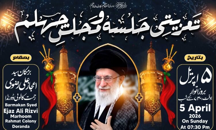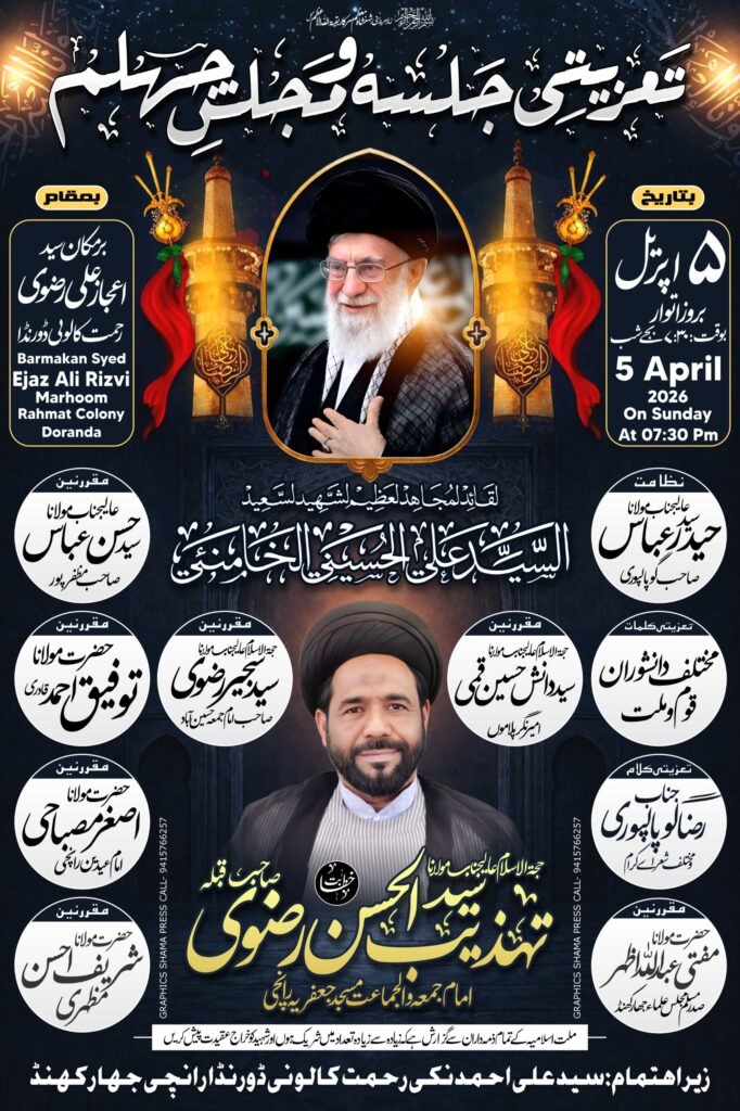 ایت اللہ خامنائی کی یاد میں تعزیتی جلسہ ذکر شہیدان کربلا 5 اپریل کو ڈورنڈا میں