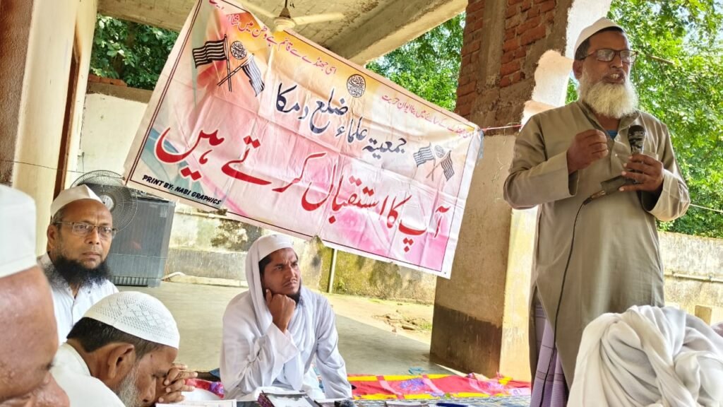 مولانا رفعت جاوید صاحب معاون مکاتب دینیہ جمعیت علماء ضلع دمکا نے مکاتب کے منظم و مستحکم بنانے کے طور و طریقے بتائے اور ہر گاؤں میں جا کر ذمہ داران مکاتب و مساجد سے بات کر کے جہاں مکتب ہیں ان کو مستحکم اور جہاں نہیں ہیں وہاں مکتب قائم کرنے پر زور دیا حضرت مولانا سراج الحق صاحب نے موجودہ ملکی حالات پر بات کرتے ہوئے فرمایا کہ ایس ائی آر اور امید پورٹل ان دونوں چیزوں کو ہلکے میں نہ لیں بلکہ ان سے بچنے کے لیے اپنے کاغذات کو وقت سے پہلے درست کرا لیں مجلس کے صدر محترم حضرت مولانا نعمت اللہ صاحب قاسمی نائب صدر جمیعت علماء صوبہ جھارکھنڈ نے مسئلہ ارتداد پر پرمغز خطاب فرمایا اس موقع پر جناب حضرت مولانا عبدالرحیم صاحب قاسمی مولانا اکرام صاحب مظاہری مولانا اختر صاحب مولانا شمس الدین صاحب مولانا صدیق صاحب قاسمی مولانا اظہر صاحب حافظ کمال صاحب مولانا عبدالقادر صاحب حافظ عظمت صاحب حافظ انصار صاحب حافظ عبدالغفار صاحب مولانا نور الہدی صاحب مولانا انور صاحب کھاڑوکدمہ مولانا مبارک صاحب محل بنا حافظ سمیع اللہ صاحب کھاڑوکدمہ حافظ جسیم صاحب کھاڑوکدمہ حافظ مرشد صاحب منکاڈیہ مولوی سیف الاسلام صاحب آمڑادم مولوی انصا الحق صاحب سونا ڈھاب مولوی نعیم الحق صاحب دوار پہاڑی قاری توحید صاحب استا جوڑا موجود تھے آخر میں جناب حضرت قاری عین الحق صاحب نائب صدر جمیعت علماء ضلع دمکا نے درس قران و درس حدیث پر شرکائے مجلس کو توجہ دلائی اور انہی کی رقت آمیز دعا پر مجلس اختتام کو پہنچی