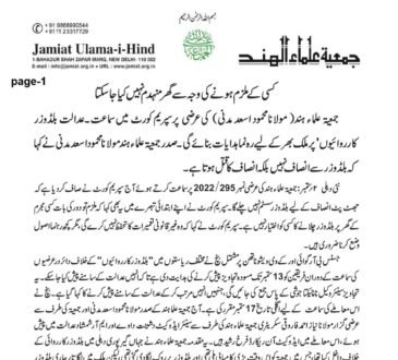 Blogکسی کے ملزم ہونے کی وجہ سے گھر منہدم نہیں کیا جا سکتاKhabar OnlySeptember 2, 2024September 2, 2024جمعیۃ علماء ہند( مولانا محمود اسعد مدنی) کی عرضی پر سپریم کورٹ میں سماعت۔عدالت بلڈوزر کارروائیوں' پر ملک بھر کے...