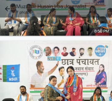 Blogनामकुम में एनएसयूआई छात्र पंचायत का आयोजन, इंडिया गठबंधन प्रत्याशी यशश्विनी सहाय रही मौजूदKhabar OnlyMay 11, 2024मुजफ्फर हुसैन ब्यूरो राँची:- झारखंड एनएसयूआई नेत्री आरुषी वंदना के नेतृत्व में राँची नामकुम में विद्यार्थियों के साथ एनएसयूआई छात्र...