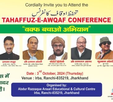 Jharkhand Newsتین اکتوبر کو اربا میں ہونے والے تحفظ اوقاف کانفرنس میں جے پی سی کے کئی ممبران شامل ہو رہےKhabar OnlySeptember 30, 2024September 30, 2024تحفظ اوقاف کانفرنس کی تیاری زوروں پر رانچی: ائندہ تین اکتوبر بروز جمعرات تحفظ اوقاف کانفرنس (وقف بچاؤ ابھیان) کا...