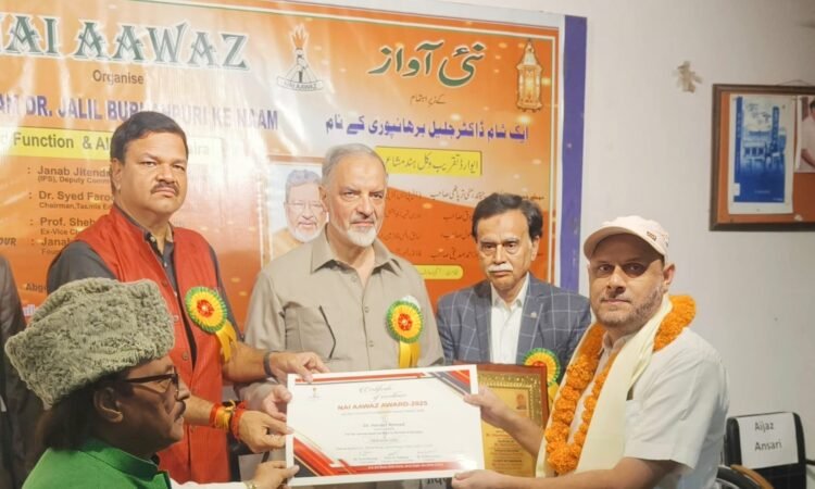 دہلی کی ادبی و ثقافتی نمائندہ تنظیم”نئی آواز” کے زیرِ اہتمام تسمیہ آڈیٹوریم، جامعہ نگر میں ایورڈ تقریب اور”ایک شام ڈاکٹر جلیل برہانپوری کے نام”سے کل ہند مشاعرہ منعقد کیا گیا