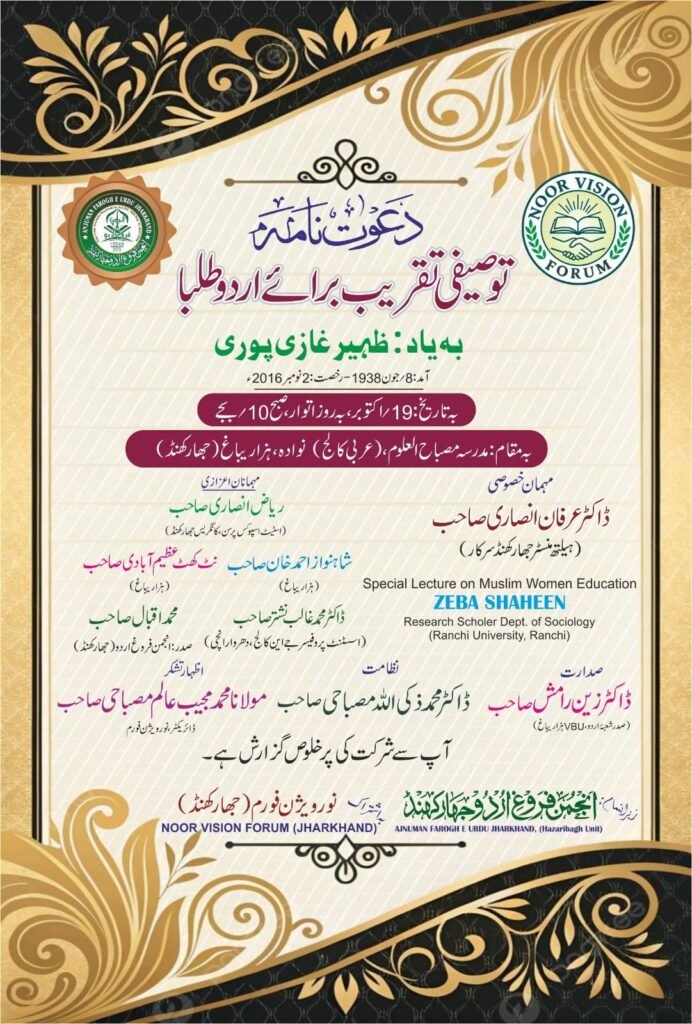 اردو طلبہ کے اعزاز میں توصیفی تقریب نوادہ ہزاریباغ میں آج