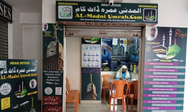 अल मदनी उमराह डॉट कॉम का उद्धघाटन….. रांची : हज व उमराह में जाने के लिए रांची में अल मदनी उमराह डॉट कॉम का शुभारंभ रविवार को हुआ! राजधानी के डॉ फतेउल्लाह रोड स्थित आयशा टॉवर में अल मदनी उमराह डॉट कार्यालय का उद्धघाटन मौलाना असगर मिसबाही ने किया! आयशा टॉवर के प्रथम तल्ले में अवस्थित अल मदनी उमराह डॉट कॉम से दिसंबर 2025 में आजमीन उमराह रांची से जेद्दा रवाना होंगे! उमराह के लिए तरह के पैकेज हैं! सिल्वर पैकेज 75 हज़ार, गोल्ड पैकेज 95 हज़ार और डायमंड पैकेज 1लाख 5 हज़ार रूपये का निर्धारित है! उमराह पैकेज की खूबी यह है की मुअल्लिम मौलाना मुकर्रम मदनी रहेंगे! आलिम-ए-दीन के मुअल्लिम होने से आजमीन-ए-उमराह आसानी व शरई तरीके से उमराह के अरकान पूरे कर पाएंगे! जायरीन मक्का, मदीना और तायफ़ के 51 से जायद इस्लामी मुकामों की ज़ियारत कर पाएंगे! सभी यात्रियों को अल मदनी उमराह डॉट कॉम की तरफ से हदिया (फ्री) एहराम दिया जायेगा! जानकारी देते हुए डायरेक्ट मौलाना मुकर्रम मदनी ने बताया की उमराह में जाने वालों को मक्का में हरम से 500 मीटर के अंदर और मदीना में 150 मीटर के दायरे में ठहराया जायेगा! मक्का और मदीना में एसी बस की सर्विस होंगी!