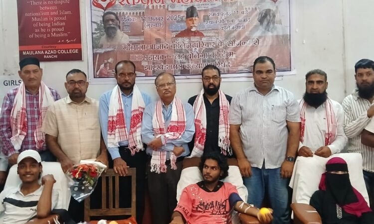 भारत के प्रथम केंद्रीय शिक्षा मंत्री भारत रत्न मौलाना अबुल कलाम आज़ाद द्वारा स्थापित मौलाना आज़ाद कॉलेज में आज पहली बार रक्तदान-महादान शिविर आदरणीय “दिशोम गुरु” शिबू सोरेन एवं हाज़ी हुसैन अंसारी की याद में लगा।