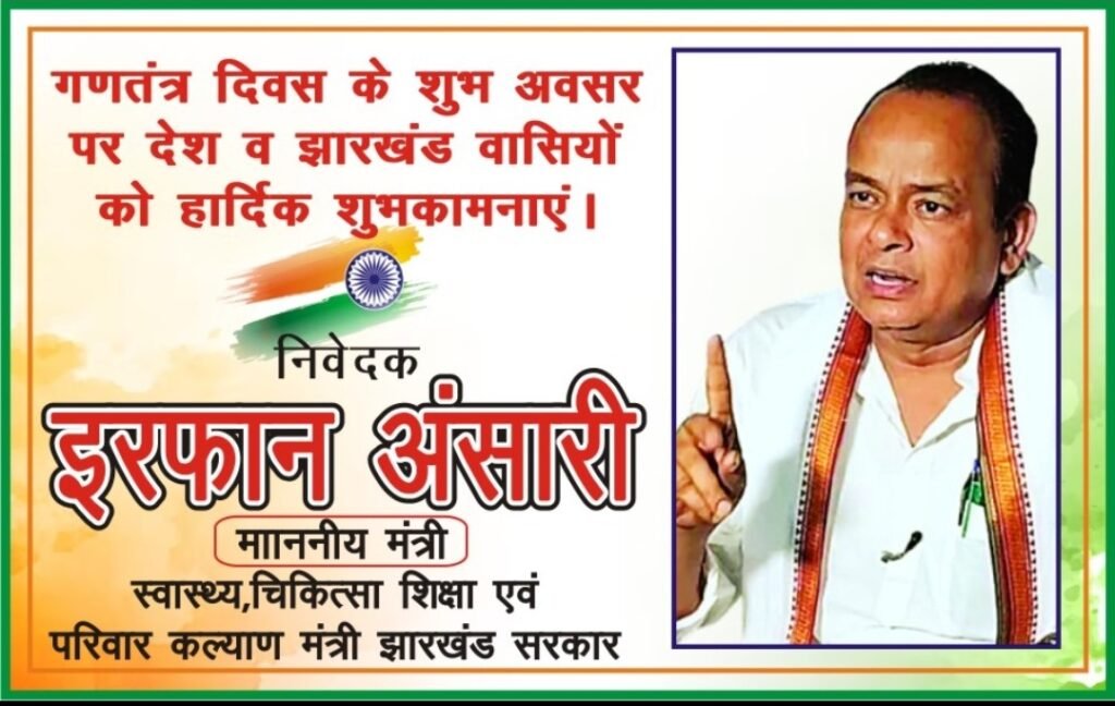 माननीय मंत्री डॉ इरफान अंसारी ने गणतंत्र दिवस की हार्दिक शुभकामनाएं दी