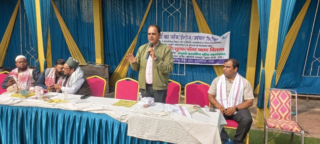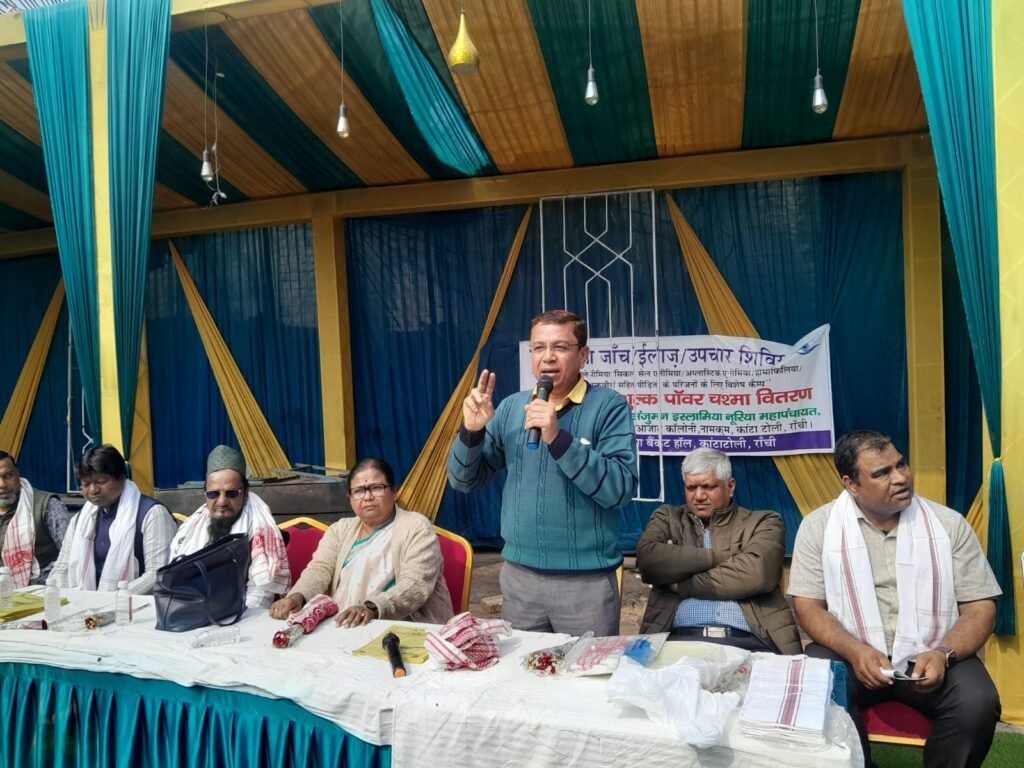 “लहू बोलेगा” रक्तदान संगठन रांची,झारखंड थैलेसीमिया पीड़ित एसोसिएशन एवं अंजुमन इस्लामिया नूरिया महापंचायत,मौलाना आज़ाद कॉलोनी, कांटा टोली के सहयोग से आज केनाया बैंकेट हॉल,कांटा टोली,रांची में आंखों का नेत्र चिकित्सालय एएसजी रांची का रक्त विकार रोग में झारखंड थैलेसीमिया/सिकल सेल एनीमिया/अप्लास्टिक एनीमिया/दिव्यंजनों एवं रक्तवीरों सहित इन पीड़ितों के परिजनों का झारखंड में पहली बार निःशुल्क आंखों का विशेष कैम्प लगा,जिसमें 76 पीड़ितों का आंखों का जांच/ईलाज़/दवा हुआ(थैलेसीमिया में 38,दिव्यंजनों में 20,रक्तवीर में 03 और 15 आम जनता/कार्यक्रम प्रबंधक) और जिसमें 36 पीड़ितों को निःशुल्क पॉवर का चश्मा बनाकर अंजुमन इस्लामिया नूरिया महापंचायत,मौलाना आज़ाद कॉलोनी, कांटा टोली,रांची के सहयोग से तीन दिन बाद आयोजक के द्वारा दिया जाएगा।