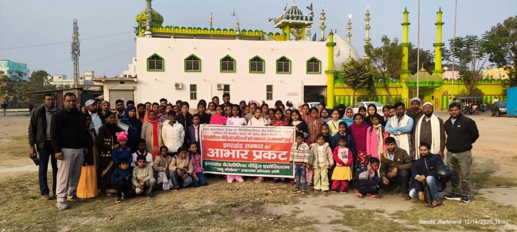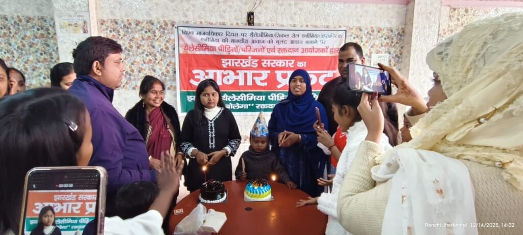 आज झारखंड थैलेसीमिया पीड़ित एसोसिएशन एवं “लहू बोलेगा” रक्तदान संगठन रांची के नेतृत्व में रिसालदार बाबा बैंकेट हॉल,डोरंडा, रांची में झारखंड भर के थैलेसीमिया/सिकल सेल/अप्लास्टिक एनीमिया पीड़ितों/परिजनों की झारखंड राज्यस्तरीय बैठक हुई जिसमें झारखंड सरकार का आभार प्रकट कार्यक्रम हुआ।