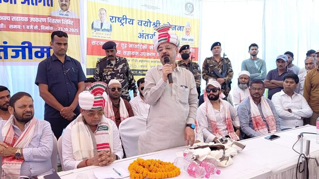 झारखंड तंज़ीम ने राष्ट्रीय वयोंश्री योजना अंतर्गत झारखंड सरकार द्वारा वृद्ध नागरिकों को निशुल्क व्हीलचेयर और अन्य सहायक उपकरण वितरण किया