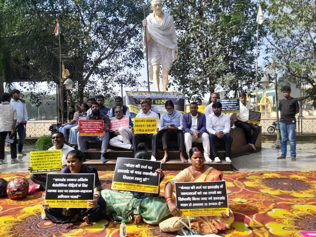 धरने की अध्यक्षता दिव्यंजनों के विशेष शिक्षक सह रक्तवीर पॉवेल कुमार एवं झारखंड थैलेसीमिया पीड़ित एसोसिएशन के संयोजक पीड़ित के परिजन संजय टोप्पो ने की।