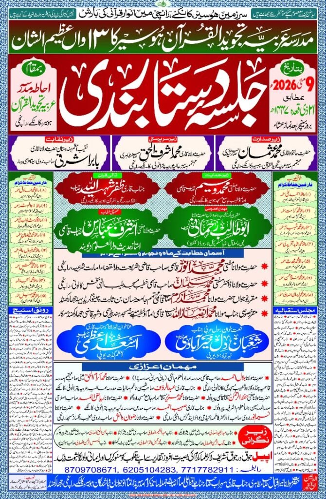 مدرسہ عربیہ تجویدالقرآن ہوسیر کا13واں عظیم الشان جلسہ دستار بندی 9 مئی کو