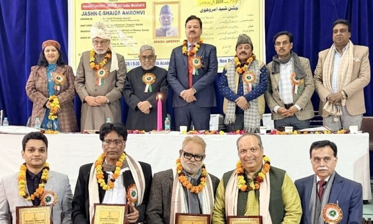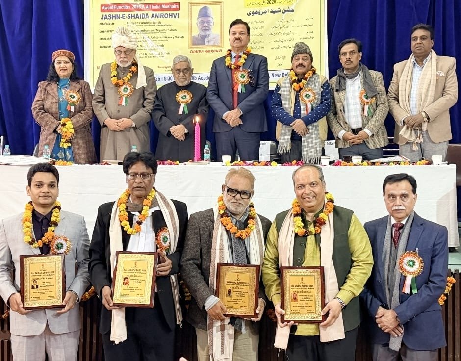 گزشتہ شام دہلی کی ادبی و ثقافتی نمائندہ تنظیم نئی آواز آور کمپیوٹر انسٹی ٹیوشن آف انفارمیشن ٹیٹوریل سوسائٹی ٹرسٹ کے مشترکہ بینر تلے کُل ہند مشاعرہ بتعاون اردو اکادمی، دہلی بعنوان جشنِ شیدا امروہوی منعقد ہوا۔صدارت اسلم بنارسی نے کی۔دہلی پولس کے ڈپٹی کمشنر اور آئی پی ایس آفسر جیتندر منی ترپاٹھی مہمانِ خصوصی تھے۔افتتاح پدم شری پروفیسر اختر الواسع نے کیا۔نامور آرکیٹیکٹ ویویک سنگھ راؤ اور فیروز احمد صدیقی مہمانانِ ذی وقار کی حیثیت سے تشریف لائے۔سبھی مہمانوں کا گلپوشی سے کنوینر اعجاز انصاری ور رام شیام حسین،اسلم بیتاب اور ہما دہلوی کے ذریعے استقبال کیا گیا۔پروفیسر اختر الواسع نے سے موقع پر اپنے کلمات ادا کرتے ہوئے کہ ہم اپنے گھروں کی تختی پر اردو میں نام کیوں نہیں لکھتے ہیں ؟ایسا کرنے کے لئے سرکار نے ہم پر کوئی پابندی نہیں لگا رکھی ہے۔جیتندر منی ترپاٹھی نے اس خوبصورت پروگرام کے انعقاد کے لئے اعجاز انصاری کو مبارکباد پیش کی۔اس موقع پرصاحبِ جشن اور بزرگ شاعر شیدا امروہوی کو شال اوڑھا کر لائف ٹائم اچیومینٹ ایوارڈ اور سند پیش کی گئی۔